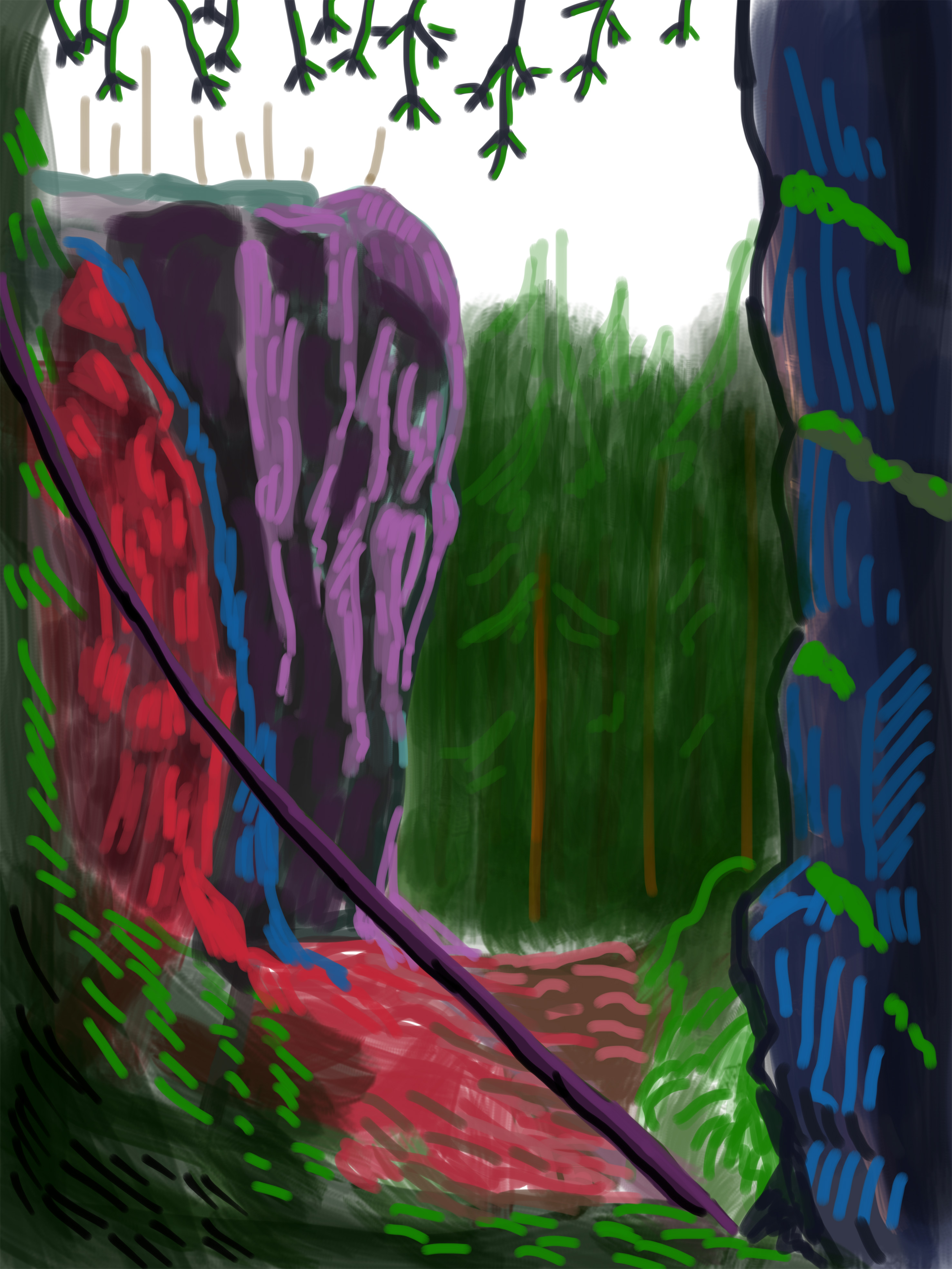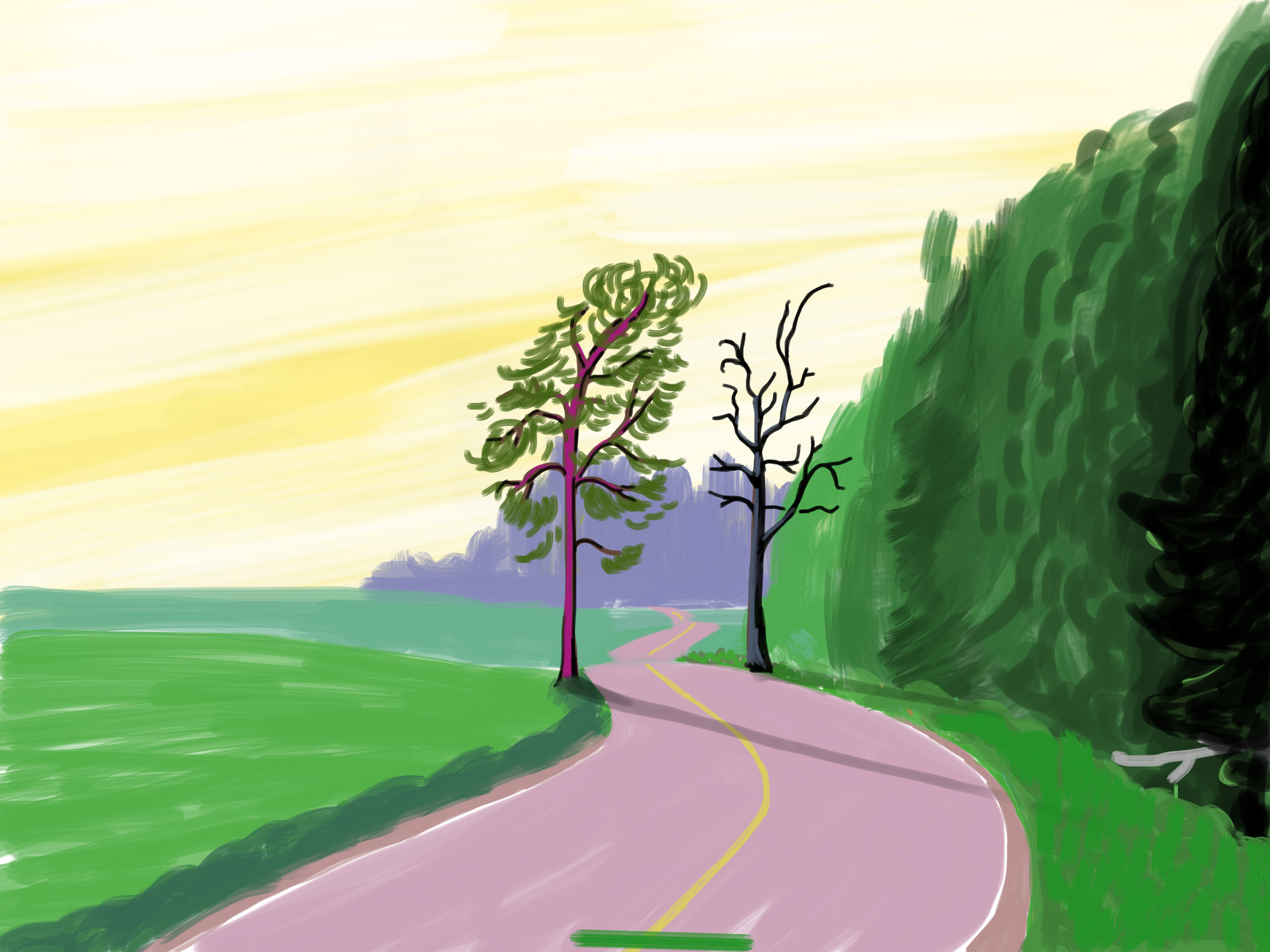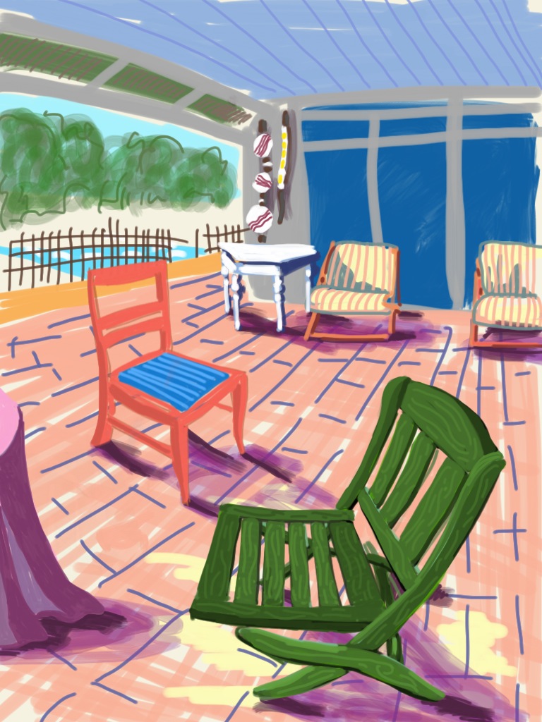 In his drawings Ijäs balances an interest in perception and realism with meaningful, productive distortion. In doing so his work is in dialogue with the history and traditions of painting. His interest in the work of Matisse, the Fauves, and Van Gogh is reflected in his use of luminous, intense color, expressive linework, and a painterly approach. While Ijäs is clearly interested in historical perceptual strategies like cubism, he also acknowledges the influence of contemporary artists like David Hockney, who explores a similar interest in drawing on hand-held electronic devices. What separates Ijäs from Hockney is the clear joy he finds in perceiving and depicting beauty. His works in this exhibition are consistently joyful, regardless of whether they admire the grandeur of nature, or celebrate the quiet bliss of an intimate, domestic scene.