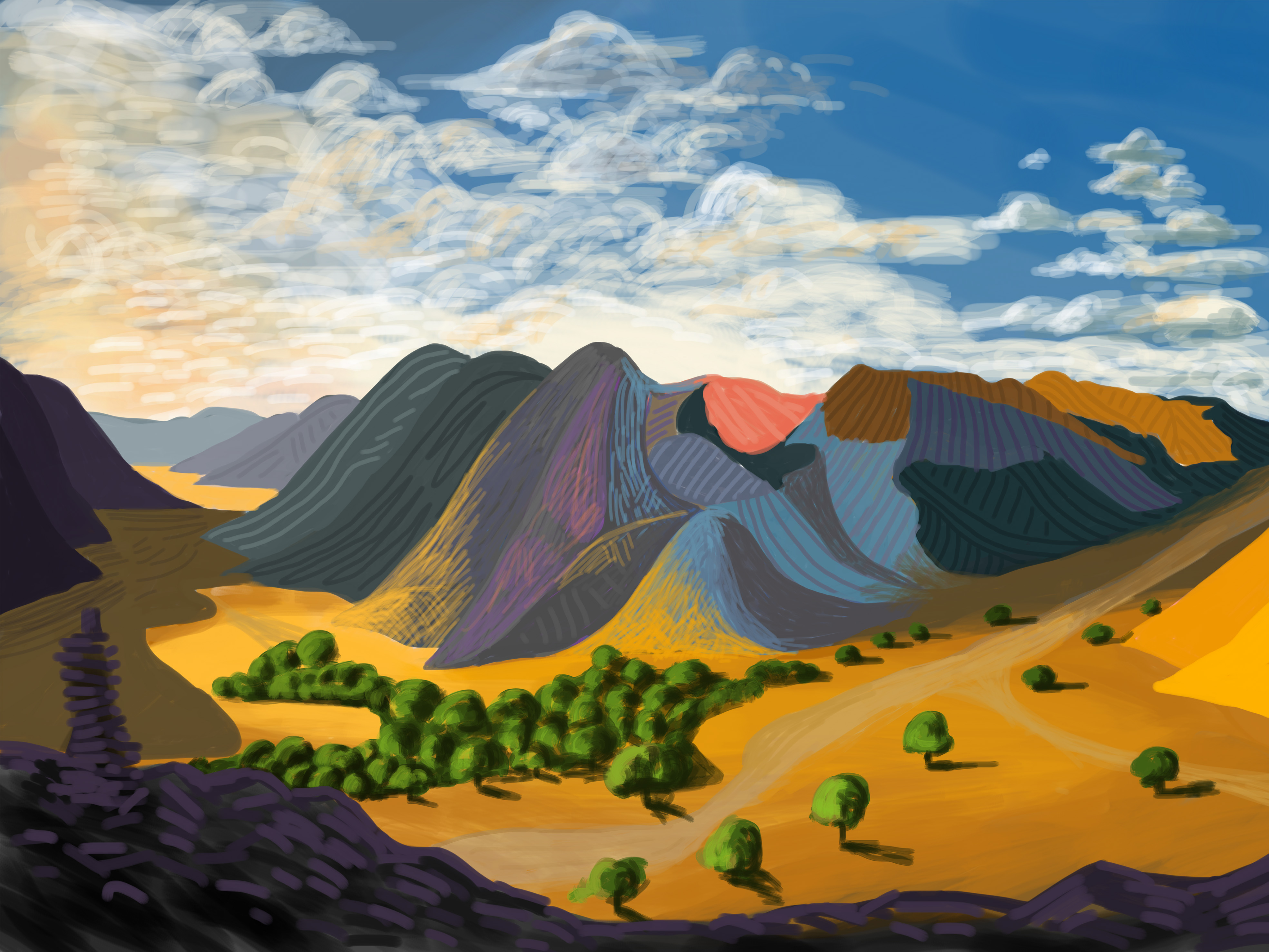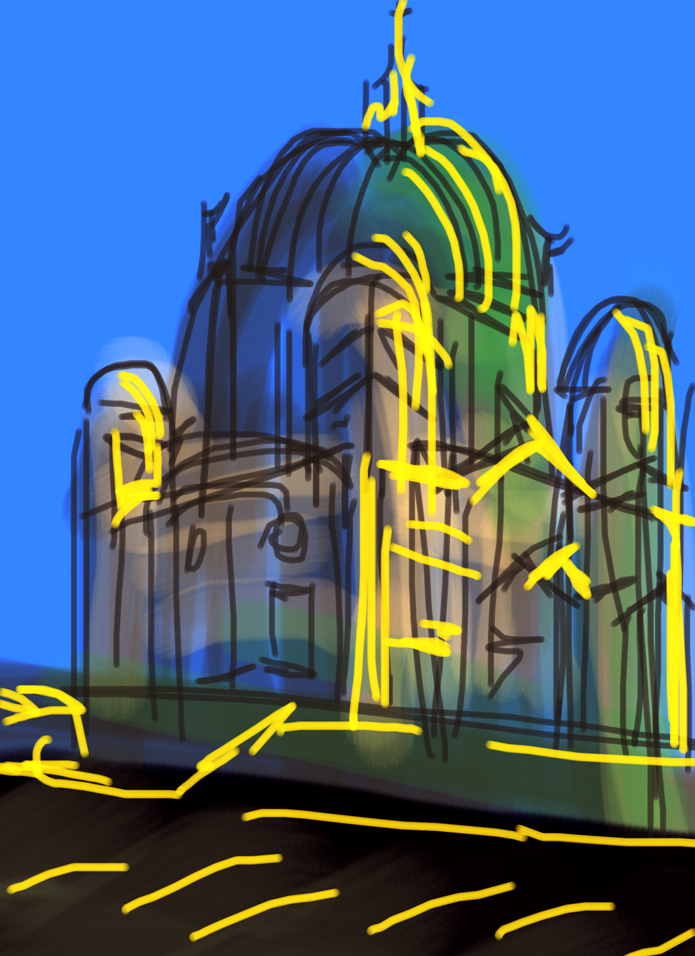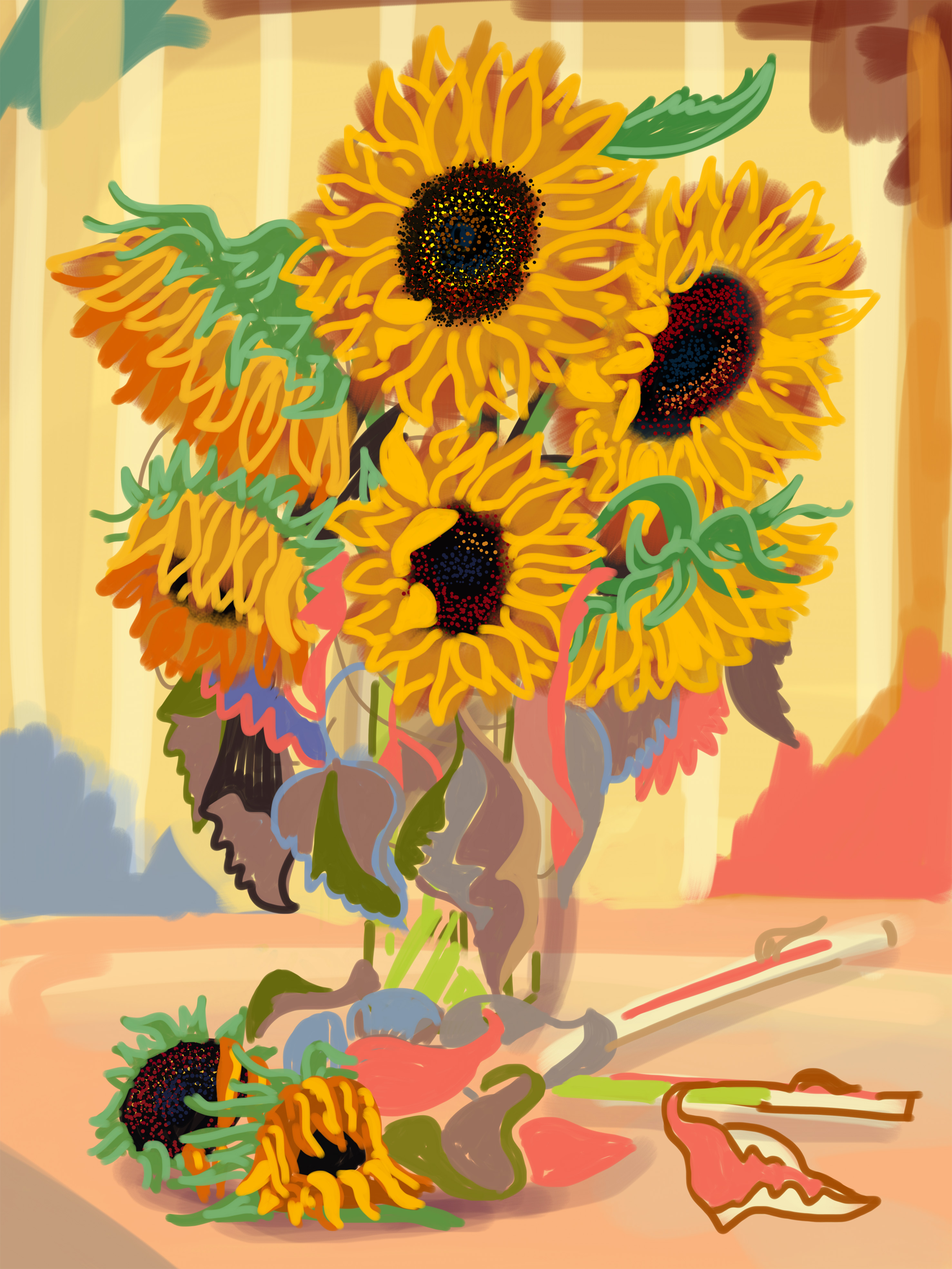 In his drawings Ijäs balances an interest in perception and realism with meaningful, productive distortion. In doing so his work is in dialogue with the history and traditions of painting. His interest in the work of Matisse, the Fauves, and Van Gogh is reflected in his use of luminous, intense color, expressive linework, and a painterly approach. While Ijäs is clearly interested in historical perceptual strategies like cubism, he also acknowledges the influence of contemporary artists like David Hockney, who explores a similar interest in drawing on hand-held electronic devices. What separates Ijäs from Hockney is the clear joy he finds in perceiving and depicting beauty. His works in this exhibition are consistently joyful, regardless of whether they admire the grandeur of nature, or celebrate the quiet bliss of an intimate, domestic scene.