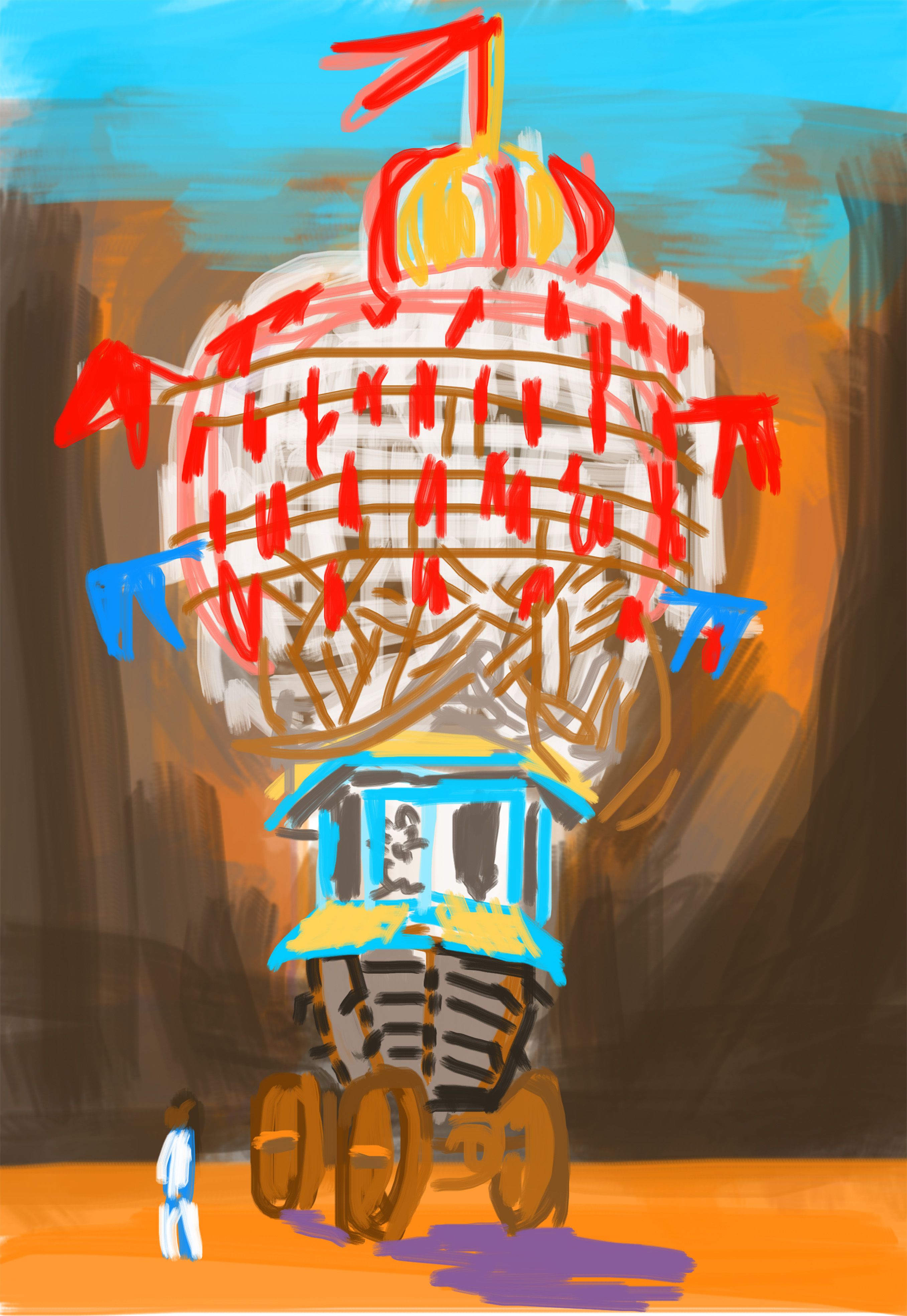 The very nature of non-traditional media encourages experimentation and risk-taking. The artist is liberated and empowered by technology, which gives him abilities and opportunities that working in traditional media would preclude. Technology also enables him to distribute the work via the internet and social media to his audience the moment he has completed it, or to exhibit it later in a variety of ways: as in-process animations, as projected backdrops for theater productions, or as prints on paper and canvas in more traditional museum and gallery settings.